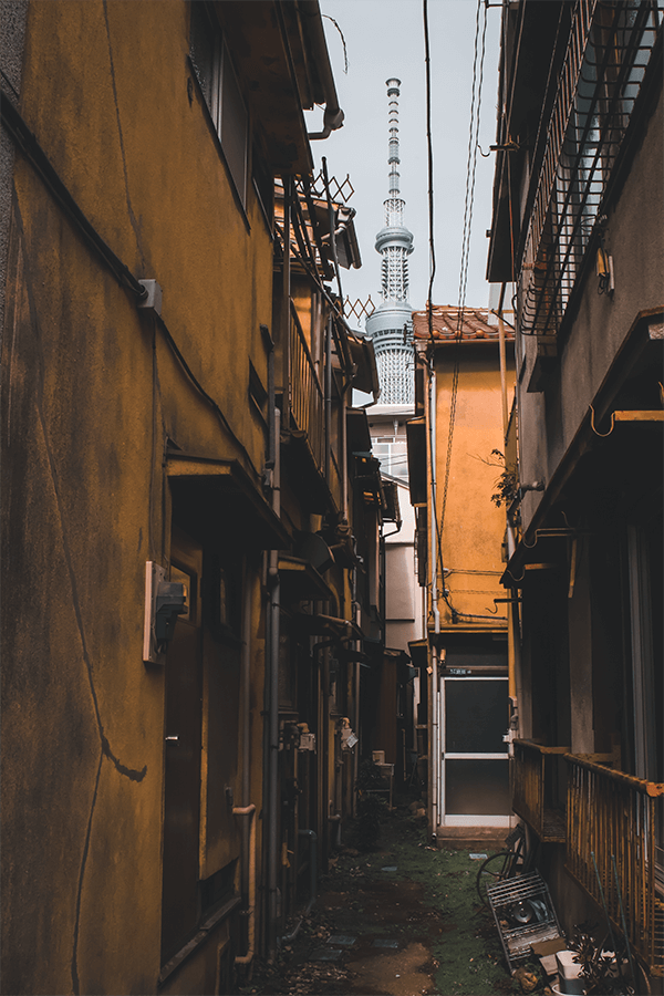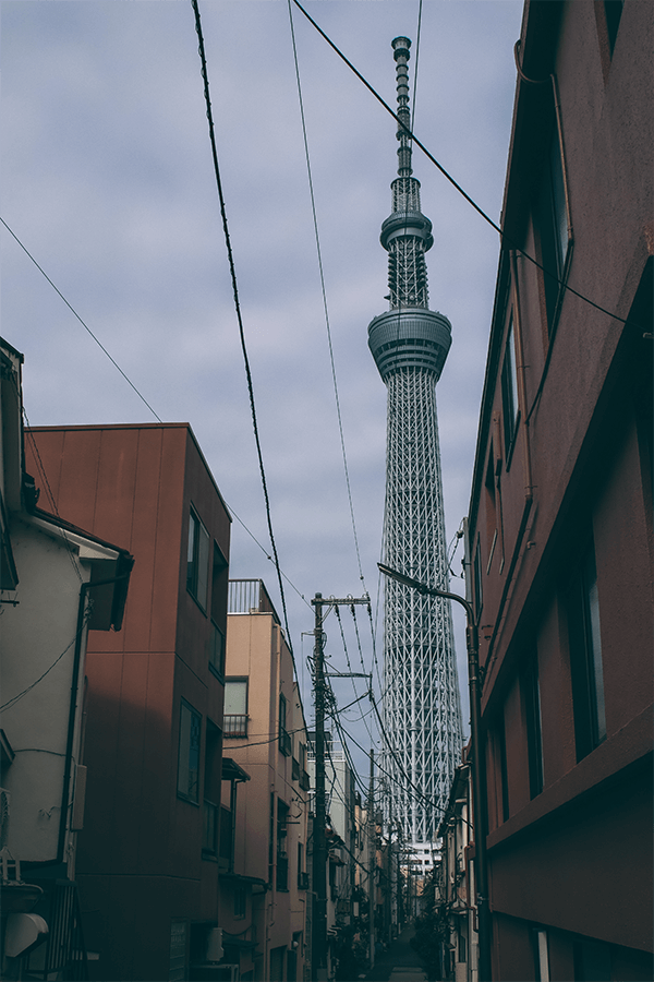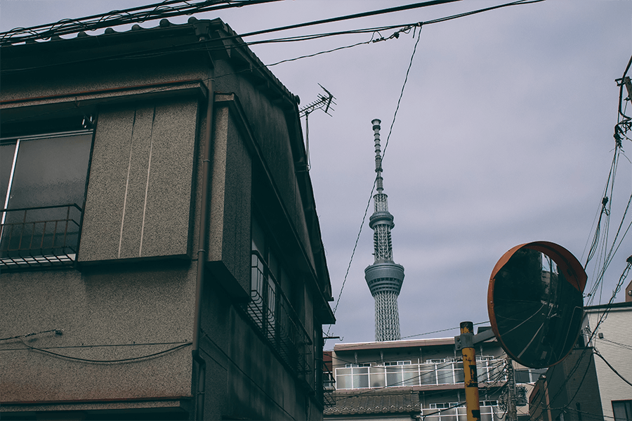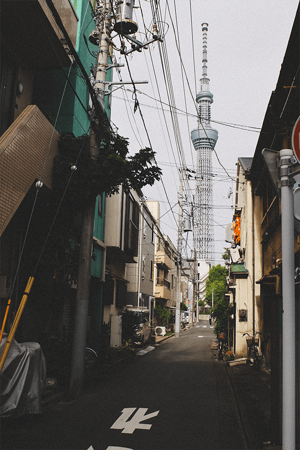 Salí desde la estación de Kodemachō hasta la estación del Skytree, porque uno de los grandes protagonistas de hierro es este personaje de 634 metros de altura: el tercero más alto del mundo. La idea era irme en camión para llegar a la primera locación, la más importante, ya que resguarda la rutina de Hirayama. Pero el camión se fue hacia el otro lado, y caminé desde Skytree hasta llegar al primer punto. Mi gran fantasía mental a veces me ponía en los zapatos de este personaje, caminando y reflexionando dónde estaba mi eje, mi equilibrio, pensando en todos los que estaban y los que habían huido, mientras las cuadras se hacían más pequeñas y de fondo siempre el gran Skytree. Las tomas cambiaban, pero el gigante siempre sobresalía: perfecto, sólido, como un holograma, pero con una presencia feroz, como todo lo organizado en ese gran país.