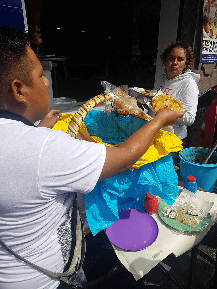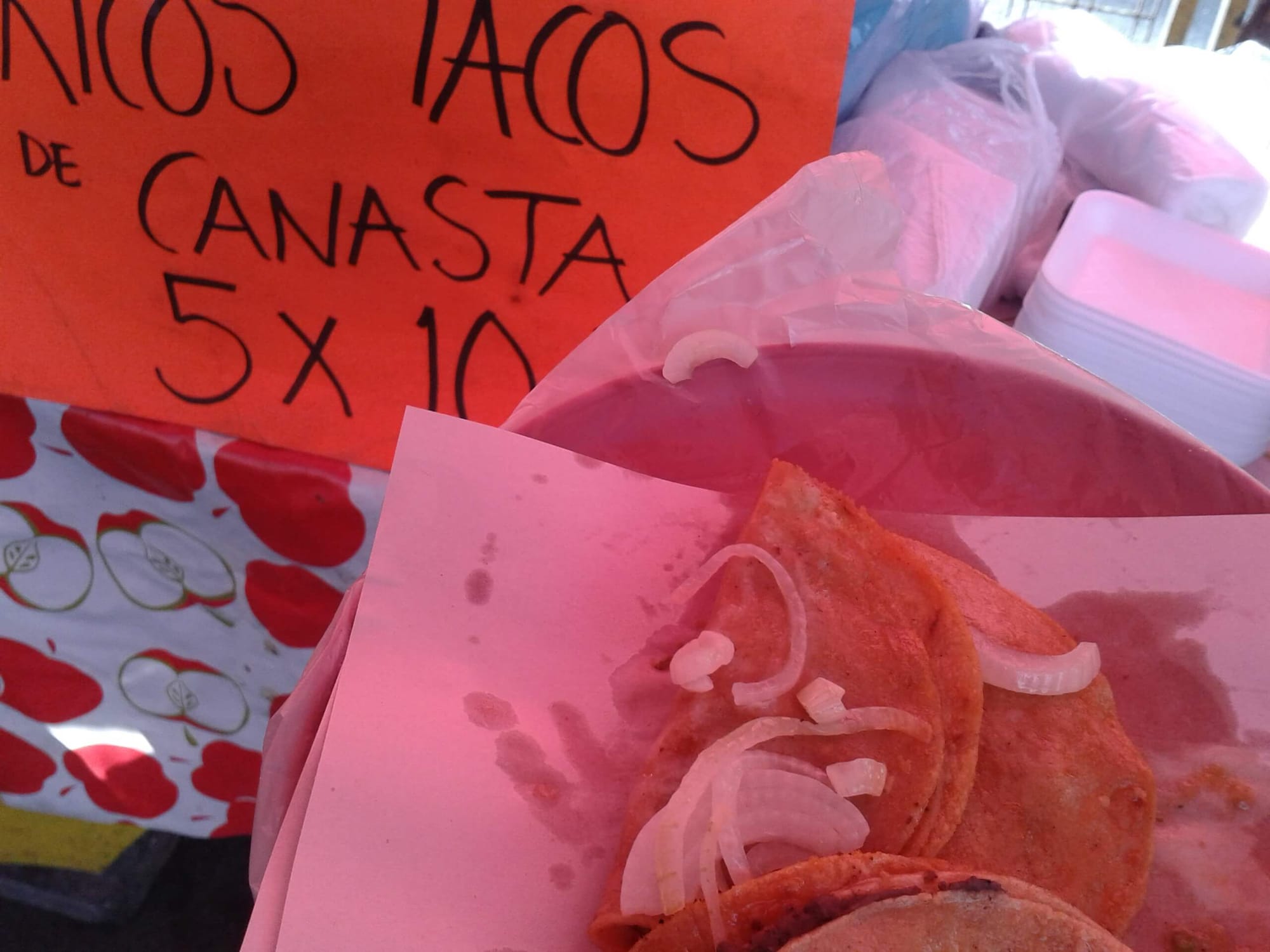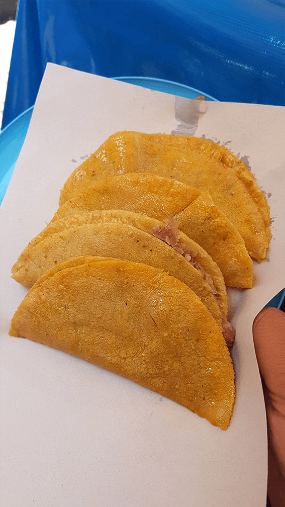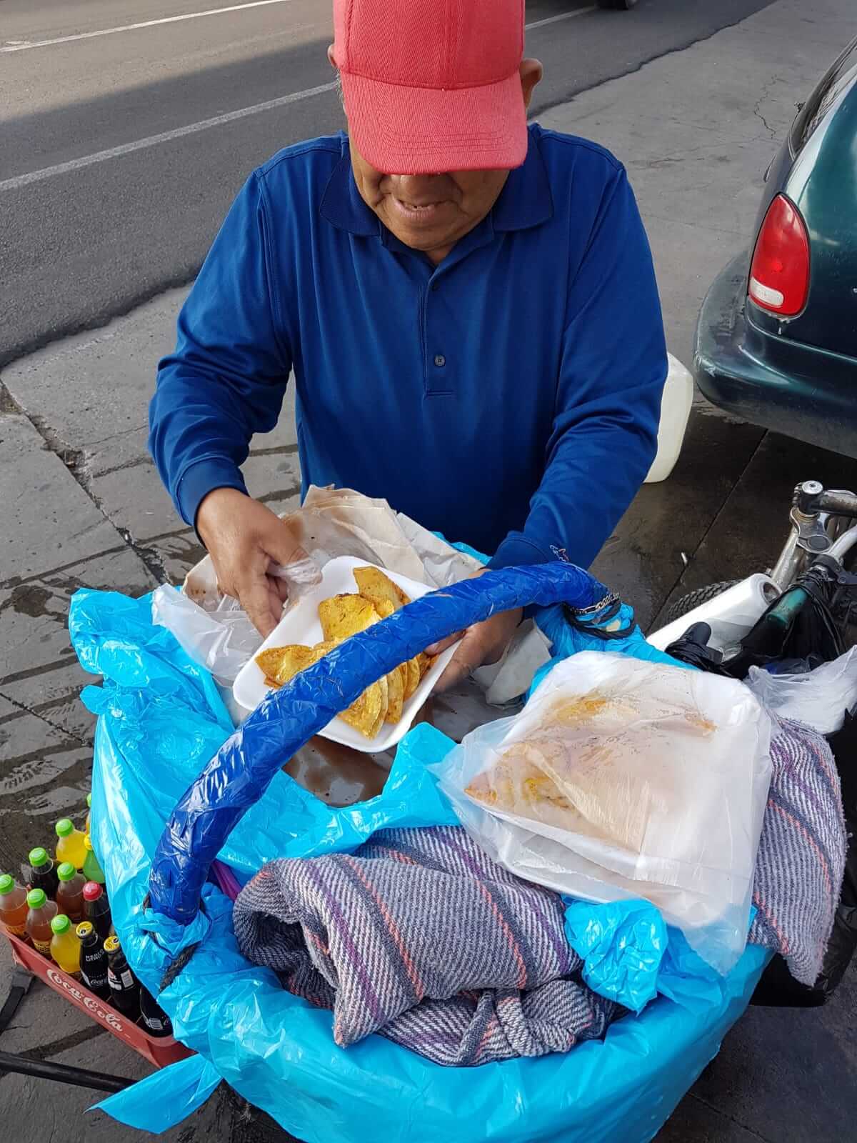 Me acerqué a preguntarle qué vendía, y dijo las palabras mágicas (otra vez, con música de polvito de hadas): tacos de canasta.