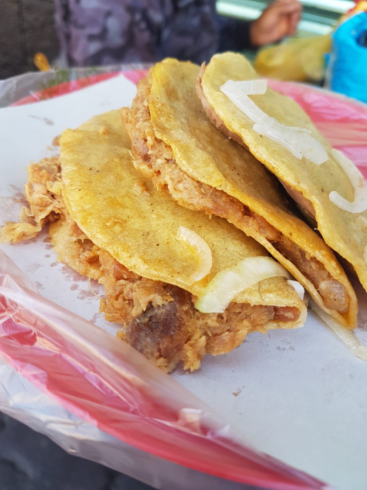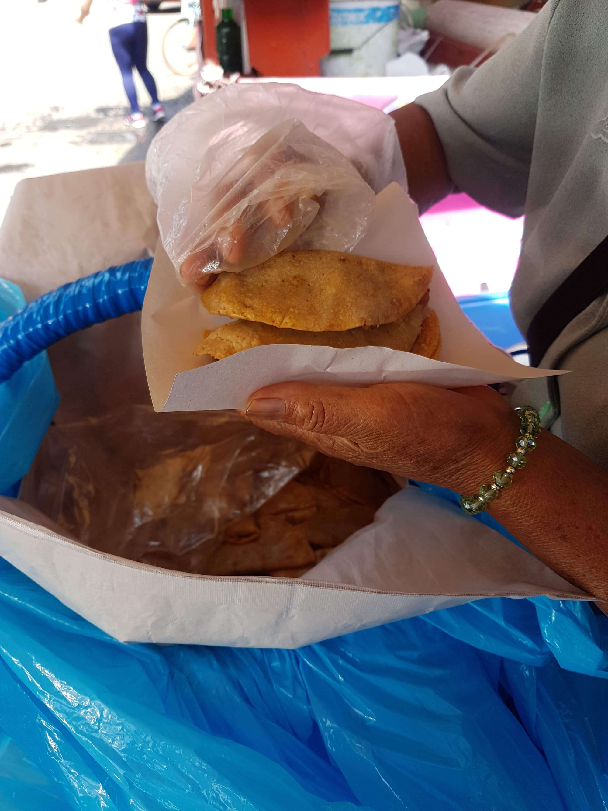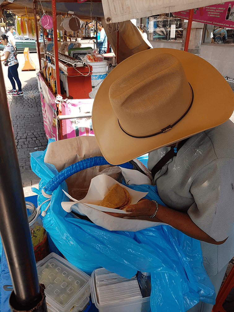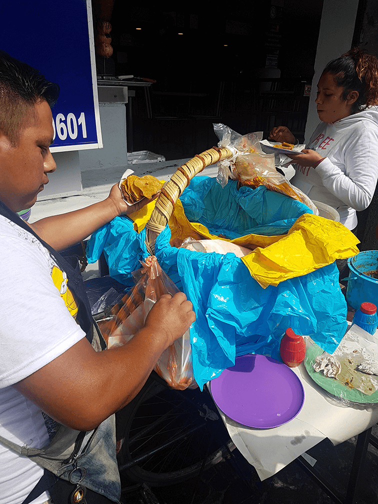Me acerqué a preguntarle qué vendía, y dijo las palabras mágicas (otra vez, con música de polvito de hadas): tacos de canasta.